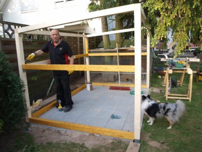 Im Mai 2010 ging es los. Wir hatten ja immer schon ein Gehege, da Käfighaltung für mich nie in Betracht kam. Das erste kleine Gehege hat mein allerliebster Schatz, der Dirk gebaut. Nun sollte es ein festes Dach bekommen und rundherum mit Paneelen versehen werden. Damit Hasenmama Susanne nicht immer Sorge wegen des Regens haben muß. Außerdem wird ein ca. 7qm großes Gehegeteil angebaut. Diese Aufgabe übernimmt das Team von der Bunnyranch, das am 22. Mai 2010 losslegt.