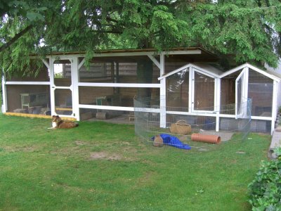 Das Gehege ist fertig, vielen Dank an die Gehegebauer der Bunny-Ranch!